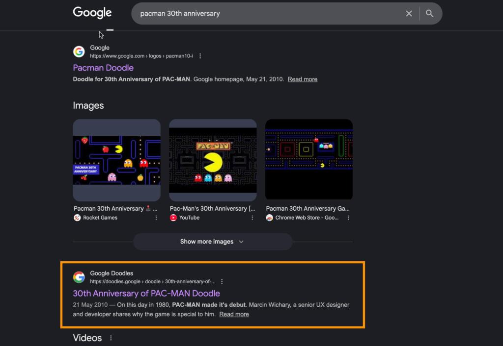 Googleのパックマンは、2010年5月21日、パックマンの発売30周年を記念して、Googleのトップページのロゴ(Doodle)として公開されました。通常、Googleの記念ロゴはイラストやアニメーションであることが多いのですが、この時はなんと「実際に遊べるゲーム」として実装されたのです。
