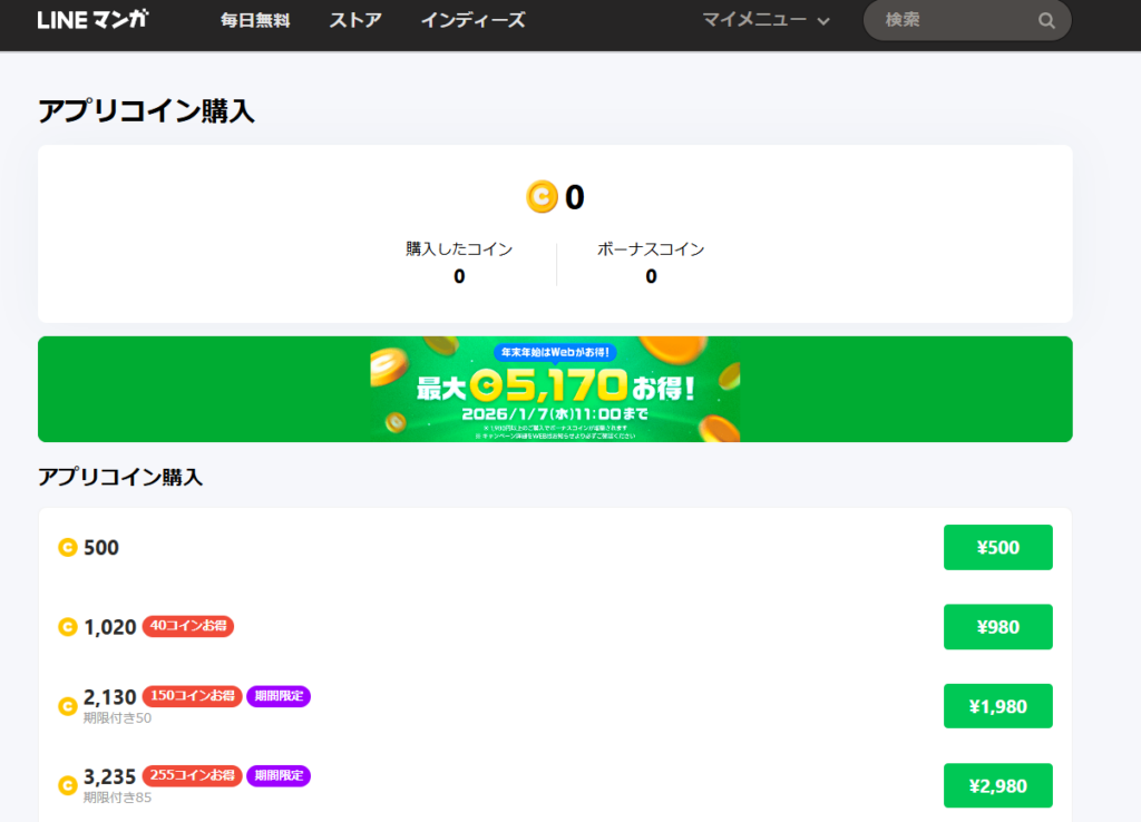 LINEマンガ|コイン無料ゲット・支払方法・無料チャージ