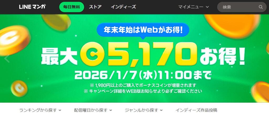 LINEマンガでは、不定期でログインキャンペーンが実施されることがあります。